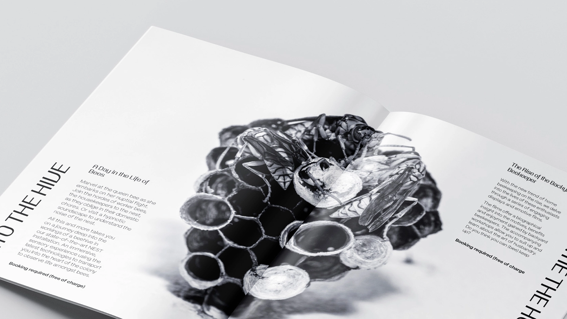 “The Beauty of Bees” is an editorial design project created for an immersive exhibition exploring the intricate world of bees. Guided by the concept “From Hive to Horizon,” this project highlights themes of interconnection, harmony, and transformation. Through a sophisticated poster and brochure design, it showcases the vital role bees play in ecosystems, inspiring innovation and environmental consciousness.